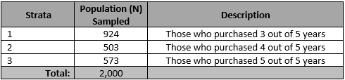 2,000 randomly selected individuals were surveyed based on the permittees who purchased a resident trappers license (type 35) for the permit years 2009, 2010, 2011, 2012, and 2013.