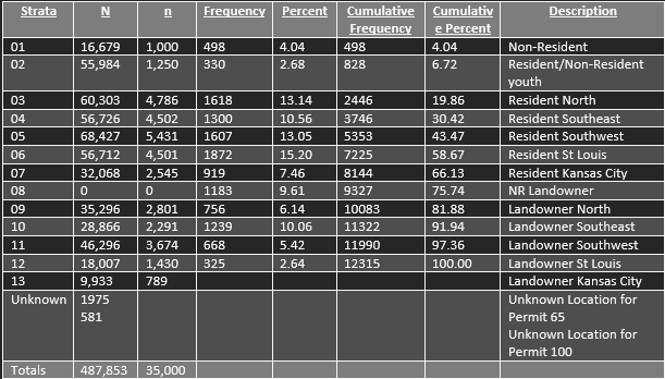 Season Dates: Urban Counties: 10 - 13 Oct. 2014, Early Youth: 1 - 2 Nov. 2014, Late Youth: 3 - 4 Jan. 2014, Nov. Portion: 15 - 25 Nov. 2014, Antlerless: 26 Nov. - 7 Dec.. 2014, Alternative Methods: 20 - 30 Dec. 2014