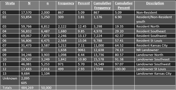 Season Dates: Urban Zones: 9 - 12 Oct. 2015, Early Youth: 31 Oct. - 1 Nov. 2015, Nov. Portion: 14 - 24 Nov. 2015, Late Youth: 2 - 3 Jan. 2015, Antlerless: 25 Nov. - 6 Dec. 2015, Alternative Methods: 19 - 29 Dec. 2015